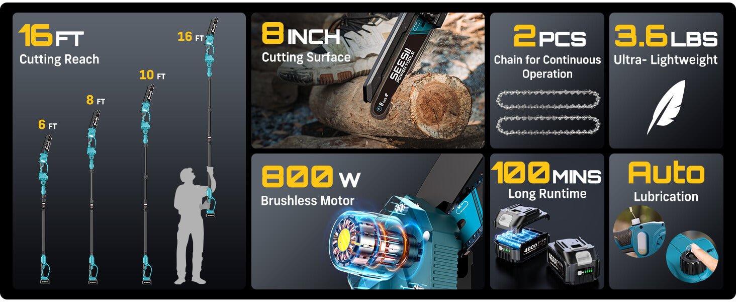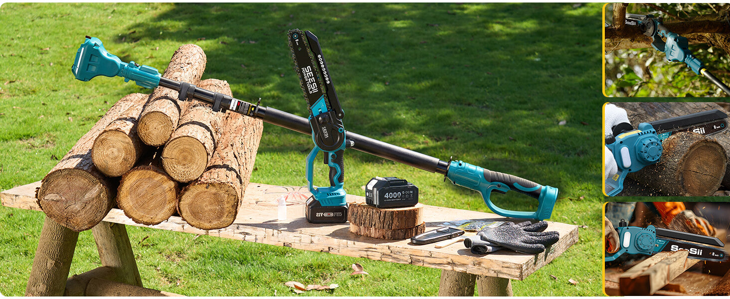 Motosierra y minimotosierra de altura 2 en 1 Seesii, motosierras de altura CH888, sierra de altura con batería