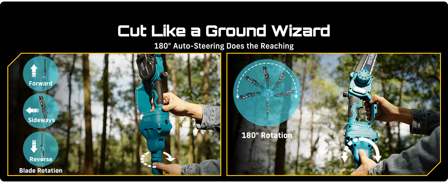 One tool for both ground-level cuts and overhead pruning—switch in seconds for easier tree trimming.