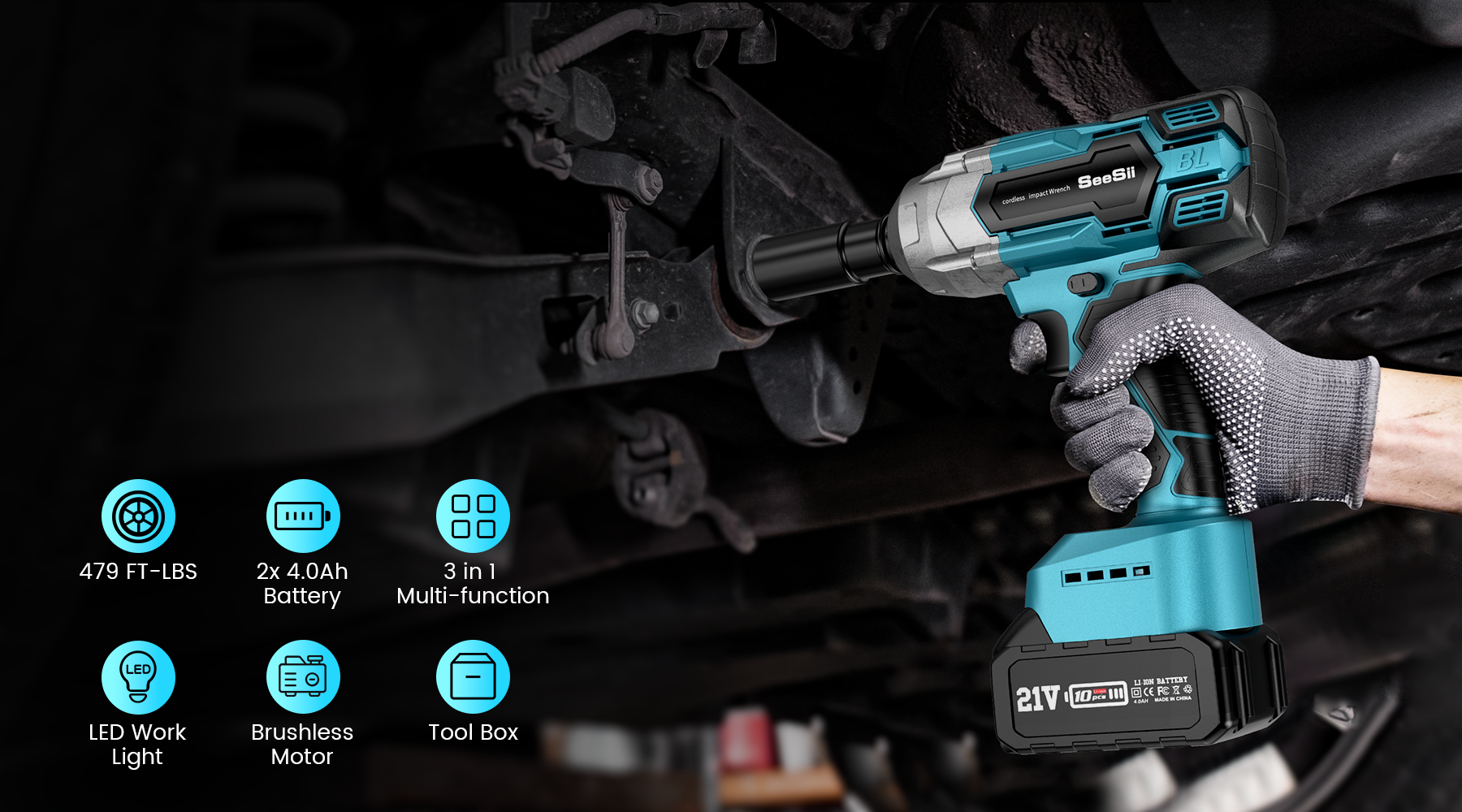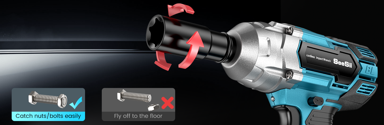 Seesii impact wrench equipped with brushless motors will run more smoothly, with less noise and less vibration, The brushless motor can better improve the working efficiency,allowing us to do more work with less electric energy and run for a longer time.
