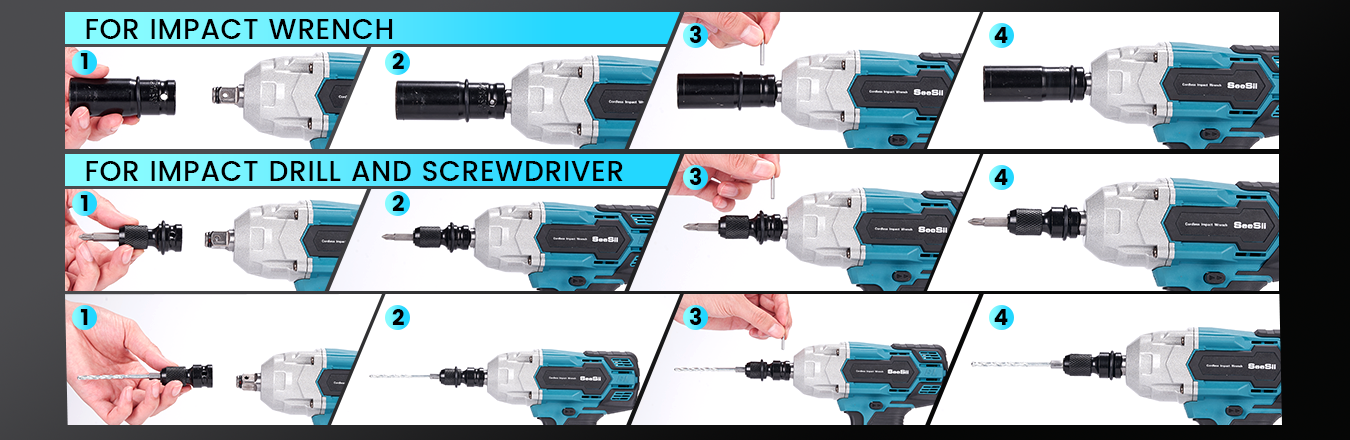 [3 in 1 Multifunctional Impact Wrench] Different accessories allow you to work in various conditions, explore more possible DIY repairement!