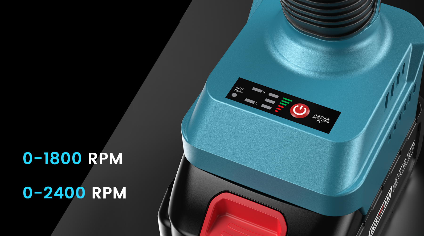 [Two Directions & Brake-stop]In reverse mode, once the nut or bolt is loosened, the brake-stop device will activate and reduce speed and torque to protect the nut from flying into nowhere to catch.