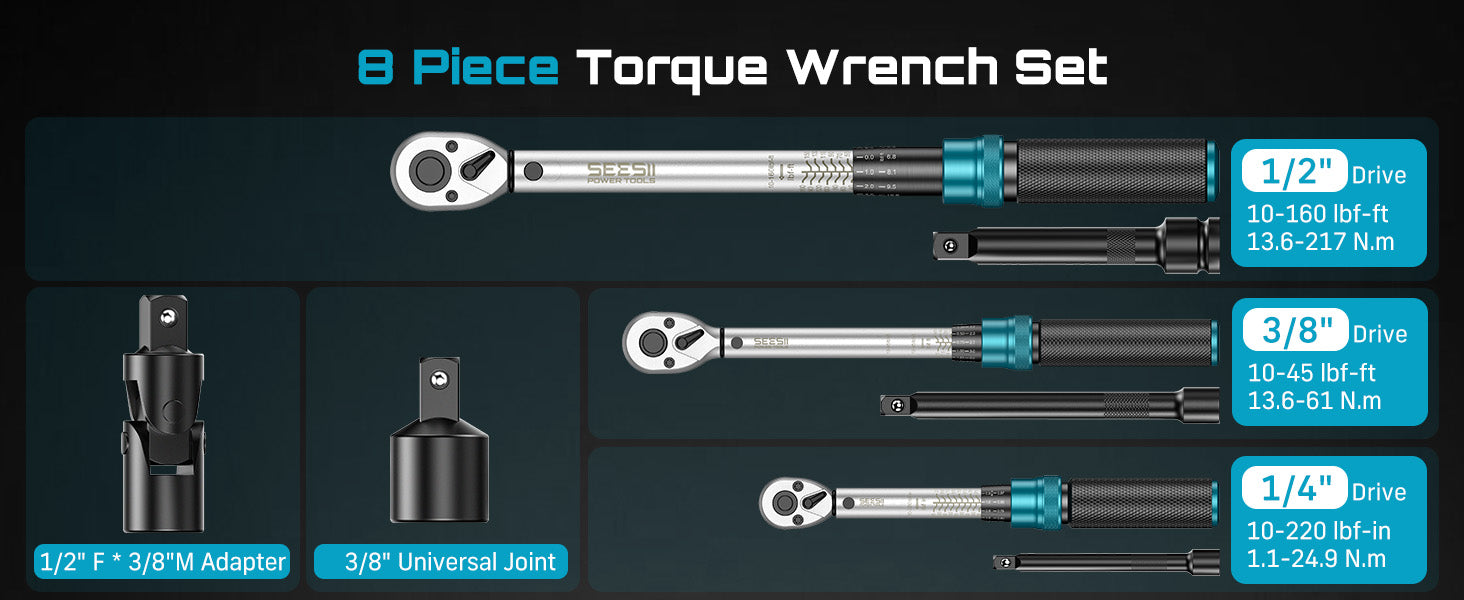 SEESII 8-Piece Torque Wrench Set for Precision Repairs